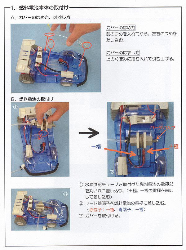 2.燃料電池と水素ガス供給チューブは原則として接合した状態で